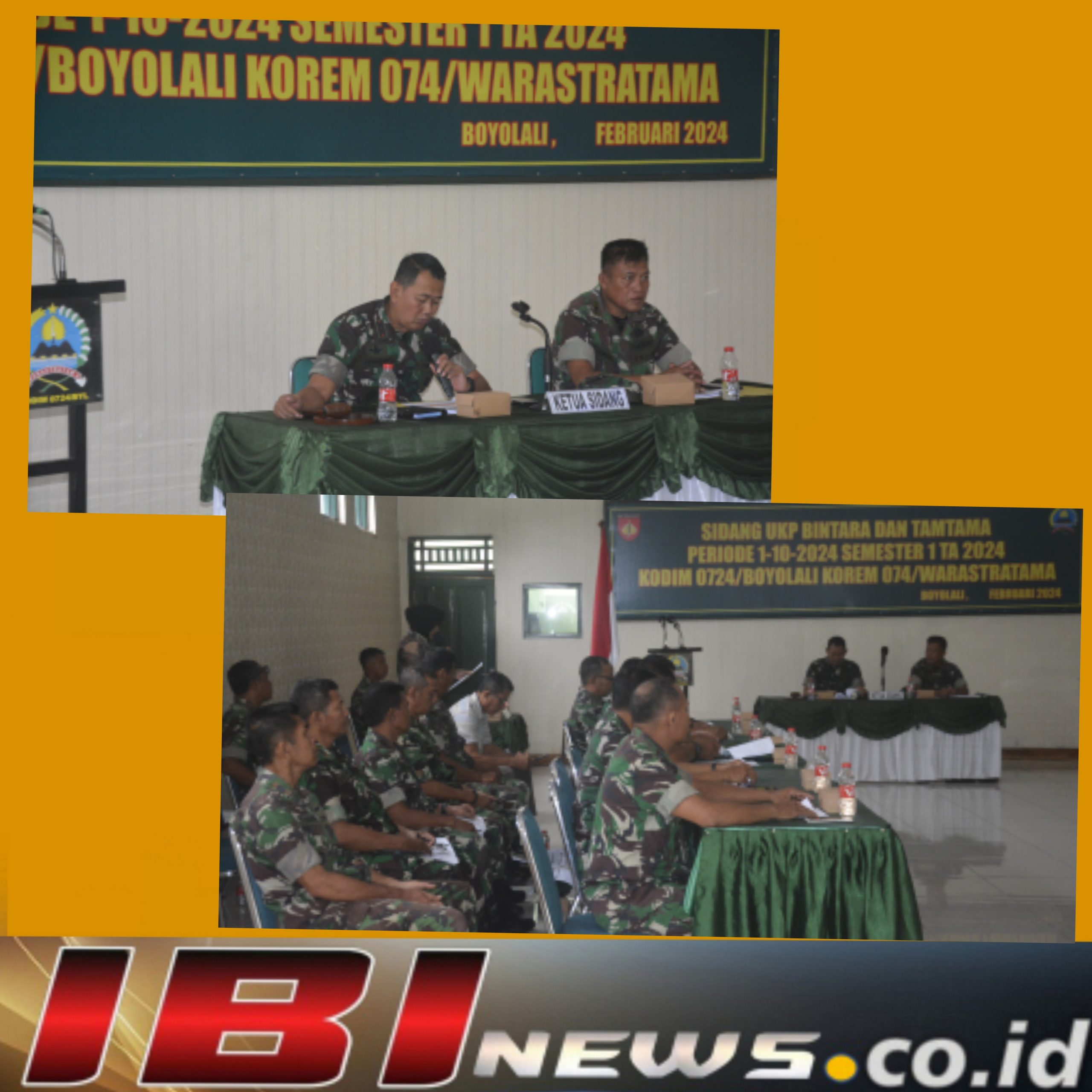 IBI news.co.idBOYOLALI — Komandan Kodim 0724/Boyolali Letkol Inf Wiweko Wulang Widodo, S Pd M Han. memimpin sidang Pangkat dan Karier (Pankar) Usul Kenaikan Pangkat (UKP) periode 01-10-2024 yang bertempat di Ruang Data Makodim 0724/Boyolali Jl. Padanaran Desa Tegalmulyo Kecamatan Mojosongo Kabupaten Boyolali. Senin (05/02/24)