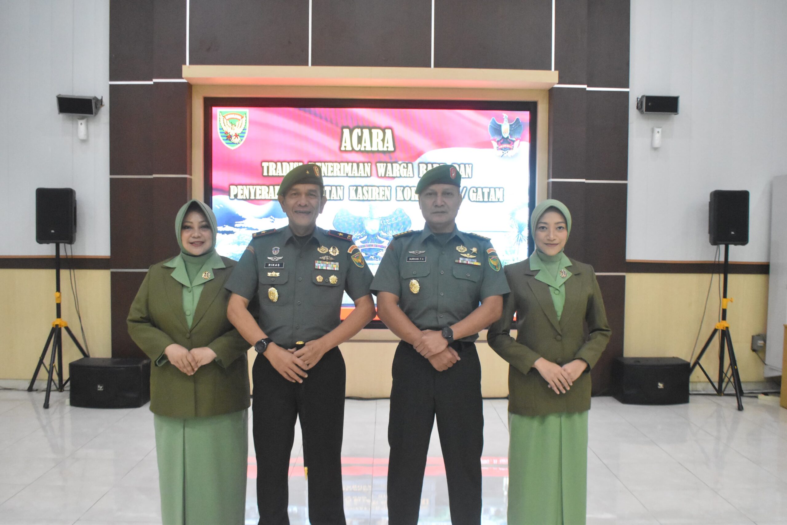 Danrem 043/Gatam Pimpin Tradisi Penerimaan Warga Baru Dan Penyerahan Jabatan Kasiren Korem 043/Gatam.