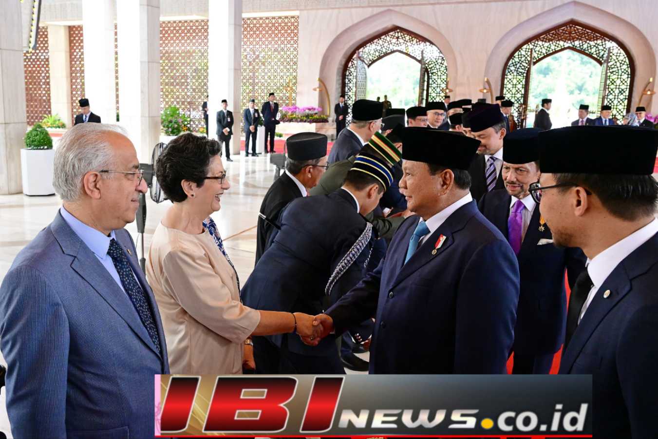 Setibanya di halaman utama Istana Nurul Iman, Presiden Prabowo disambut langsung oleh Sultan Hassanal Bolkiah. Suasana kebangsaan terasa kuat ketika lagu kebangsaan Indonesia Raya dan lagu kebangsaan Brunei Darussalam berkumandang, diiringi 21 dentuman meriam kehormatan. Presiden Prabowo dan Sultan Hassanal Bolkiah kemudian melakukan pemeriksaan pasukan kehormatan, menandai penghormatan resmi dari tuan rumah kepada kepala negara tamu.