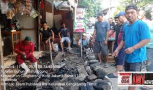 JAKARTA //– Sejak pagi hari puluhan warga masyarakat di wilayah RT 02 / 014 sudah berkumpul untuk melaksanakan kerja bakti membersihkan Jalan Air dan mengangkat lumpur disepanjang jalan H Lengkong RT 02 RW 014 Kelurahan Cengkareng Timur Kecamatan Cengkareng Jakarta Barat . Kerja Bakti di pimpin langsung oleh Ketua RT – 02,- bersama LMK 014 , Minggu ( 11 / 05 / 2025)