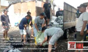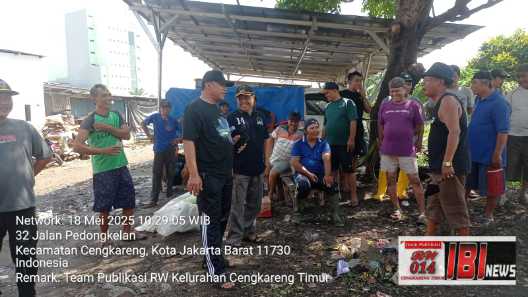 JAKARTA BARAT //Ketua RW 014 H.Lili Sutarli didampingi LMK H.Rambat lakukan pemantauan kerja bakti mingguan rutin diwilayah RT 06 RW 014 Kelurahan Cengkareng Timur Kecamatan Cengkareng Jakarta Barat Minggu ( 18- Mei – 2025 )