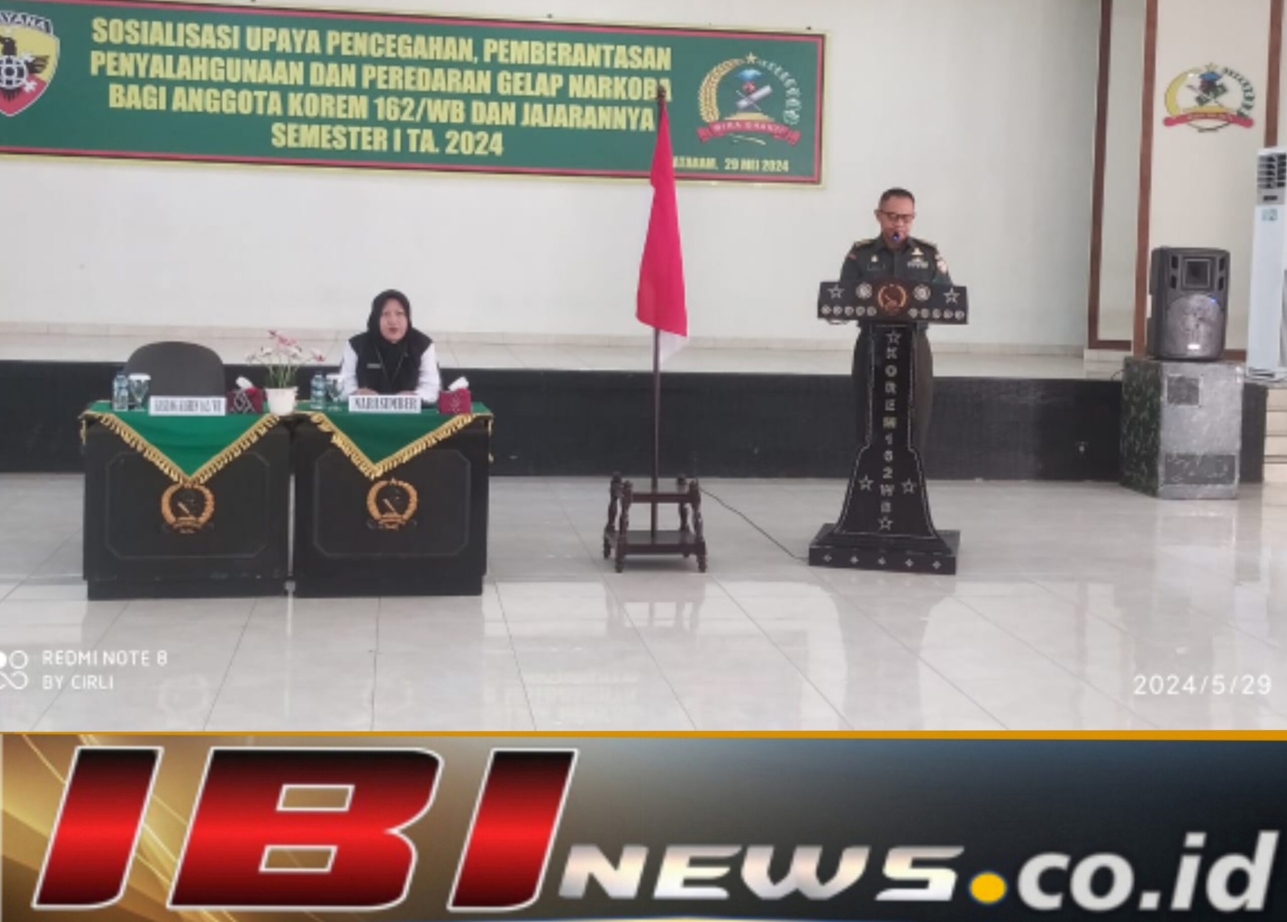 Komandan Korem 162/WB Brigadir Jenderal TNI Agus Bhakti, S.I.P., M.I.P., M.Han., dalam sambutannya yang dibacakan oleh Kasilog Kasrem 162/WB Kolonel Arm Hery Bayu Widiatmoko, SE., menyampaikan penyuluhan P4GN merupakan program dari Komando Atas yang diberikan kepada seluruh Prajurit dan PNS jajaran TNI AD sebagai upaya untuk memberikan pengetahuan dan pemahaman tentang bahaya penyalahgunaan Narkotika dan obat berbahaya (Narkoba).