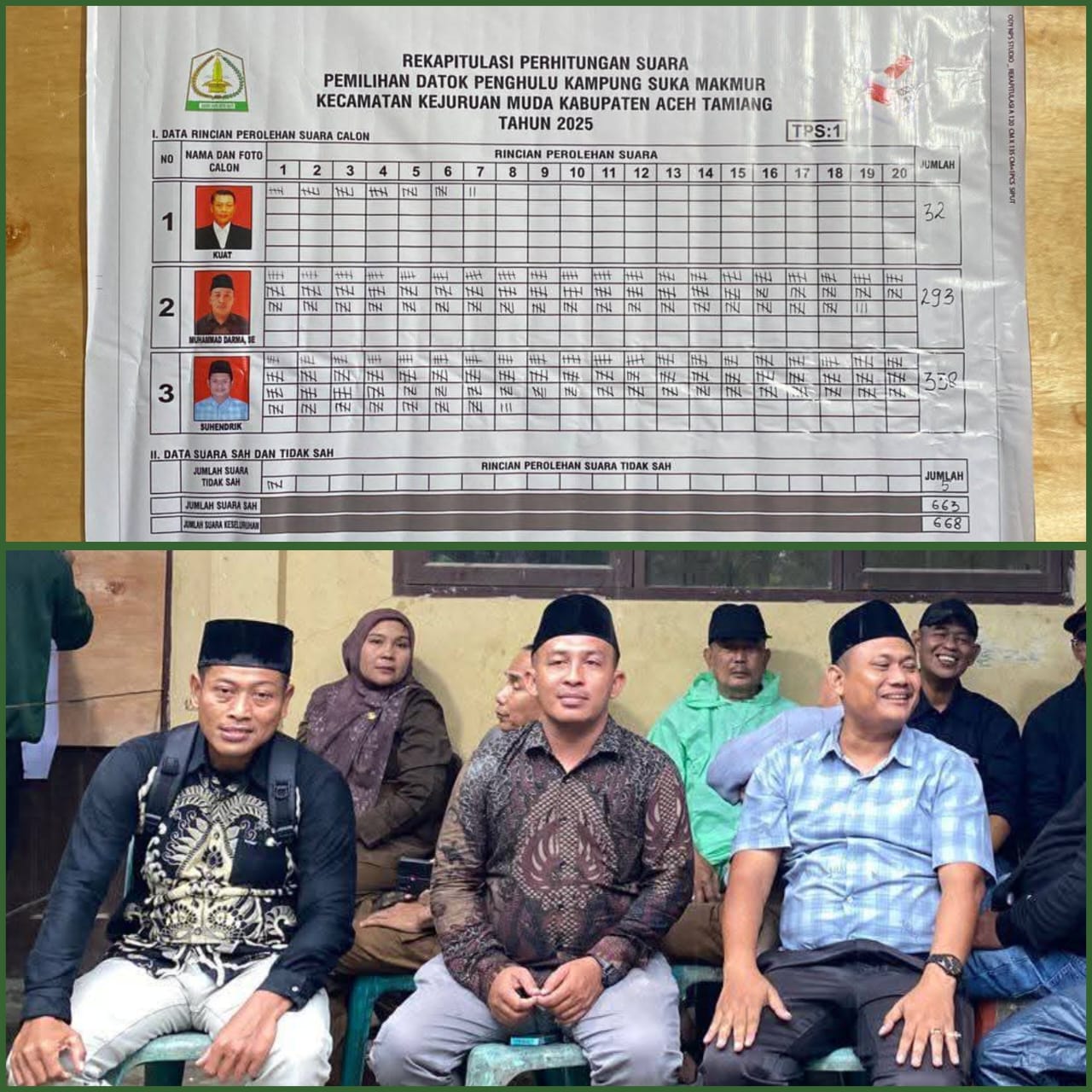Aceh Tamiang, IBInews.com — Pemilihan Datok Penghulu (Kepala Desa) Kampung Suka Makmur Kecamatan Kejuruan Muda, Kabupaten Aceh Tamiang berjalan aman lancar dan kondusif, Selasa (25/11/2025).