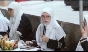 Sambutan kedua Ustadzah Muniroh pimpinan Majlis Ta’lim Raudhatul Jannah mengucapkan banyak terimakasih atas dukungan dan doa dari ketua RT 01 yang kebetulan beliau adalah suami saya kata ustadzah Muniroh sambil tersenyum