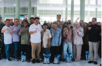 Disampaikan Hidayat Arsani bahwa wilayah Kabupaten Bangka Tengah menjadi wilayah keenam pembagian sembako peringatan HUT ke-25 Babel ini.