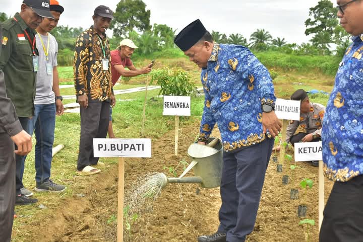 Aceh Tamiang – Pj. Bupati Aceh Tamiang Drs. Asra menghadiri Launching Penanaman Perdana Gugus Tugas Polri Program 1 Perkarangan Pangan Bergizi yang digelar oleh Polres Aceh Tamiang. Bertempat di halaman belakang SMK N 3 Karang Baru pada Kamis (02/01/25).