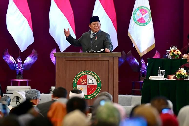 Presiden Prabowo Subianto menghadiri Sidang Senat Terbuka dalam rangka Pengukuhan Mahasiswa Baru Sarjana dan Magister Tahun Ajaran 2025/2026 serta Wisuda Sarjana sekaligus Dies Natalis Universitas Kebangsaan Republik Indonesia (UKRI) Tahun 2025. Acara berlangsung dengan khidmat di Trans Convention Centre, Kota Bandung, Provinsi Jawa Barat, Sabtu (18/10/2025).