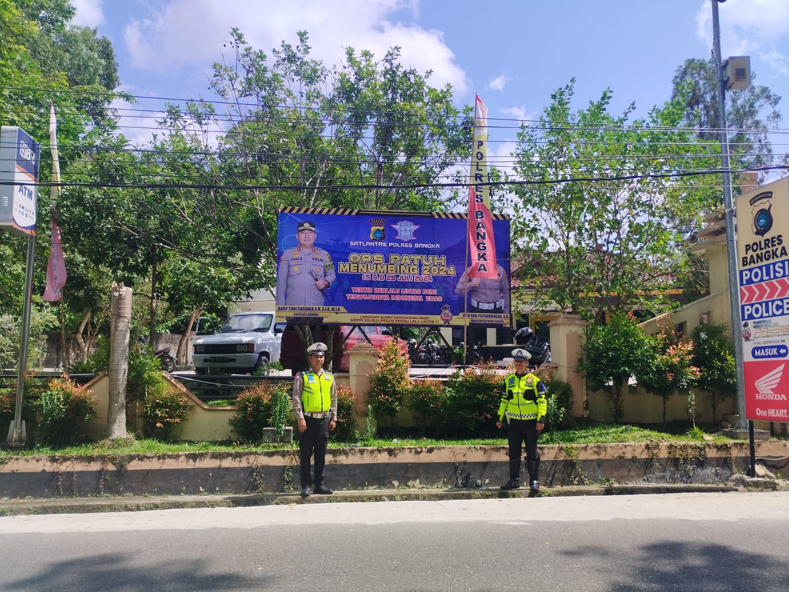 IBInews.co.id~//- Bangka (Sungailiat) – Satuan Lalu Lintas (Satlantas) Polres Bangka melaksanakan kegiatan pemasangan spanduk dan stiker serta brosur, dalam Operasi Patuh Menumbing Tahun 2024, Kamis (18/7/2024).