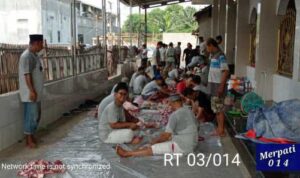 RT 05 / 014. Jumlah hewan Qurban Sapi 1 Ekor, Kambing 2 Ekor penyembelihan berlangsung di rumah warga masing masing