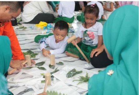 Kegiatan dilanjutkan dengan belajar bersama pembuatan ecoprint. Anak-anak dan orang tua bersemangat dan kegiatan ini bertujuan menumbuhkan kader PKK yang kreatif dan inovatif untuk meningkatkan ekonomi masyarakat di Bangka Tengah.-