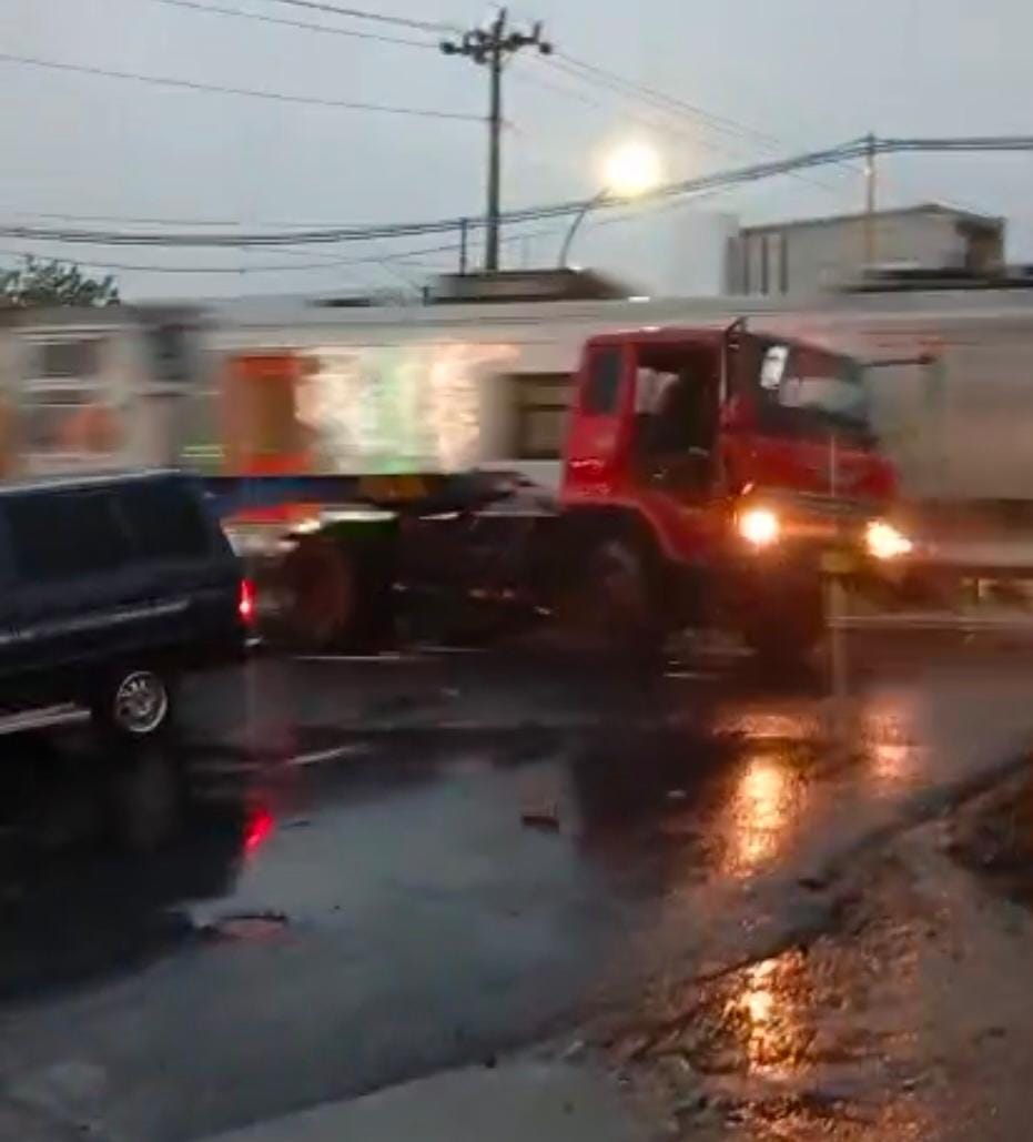 Menurut keterangan warga di lokasi, insiden bermula ketika trailer melintas di tengah kemacetan dan terjebak di perlintasan rel. Saat itu, kereta api dari arah utara menuju selatan melintas dan menghantam bagian belakang kendaraan tersebut. Benturan keras membuat trailer terseret sekitar 15 meter sebelum akhirnya berhenti di sisi rel.