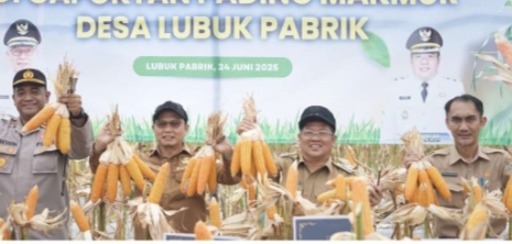 IBInews.co.id~//- Bangka Tengah (Lubuk Besar) – Bupati Bangka Tengah, Algafry Rahman, bersama Wakil Bupati, Efrianda memimpin kegiatan panen jagung pipil di lahan milik Gabungan Kelompok Tani (Gapoktan) Pading Makmur, Dusun C2, Desa Lubuk Pabrik, Kecamatan Lubuk Besar, Selasa (24/06/2025) sore.