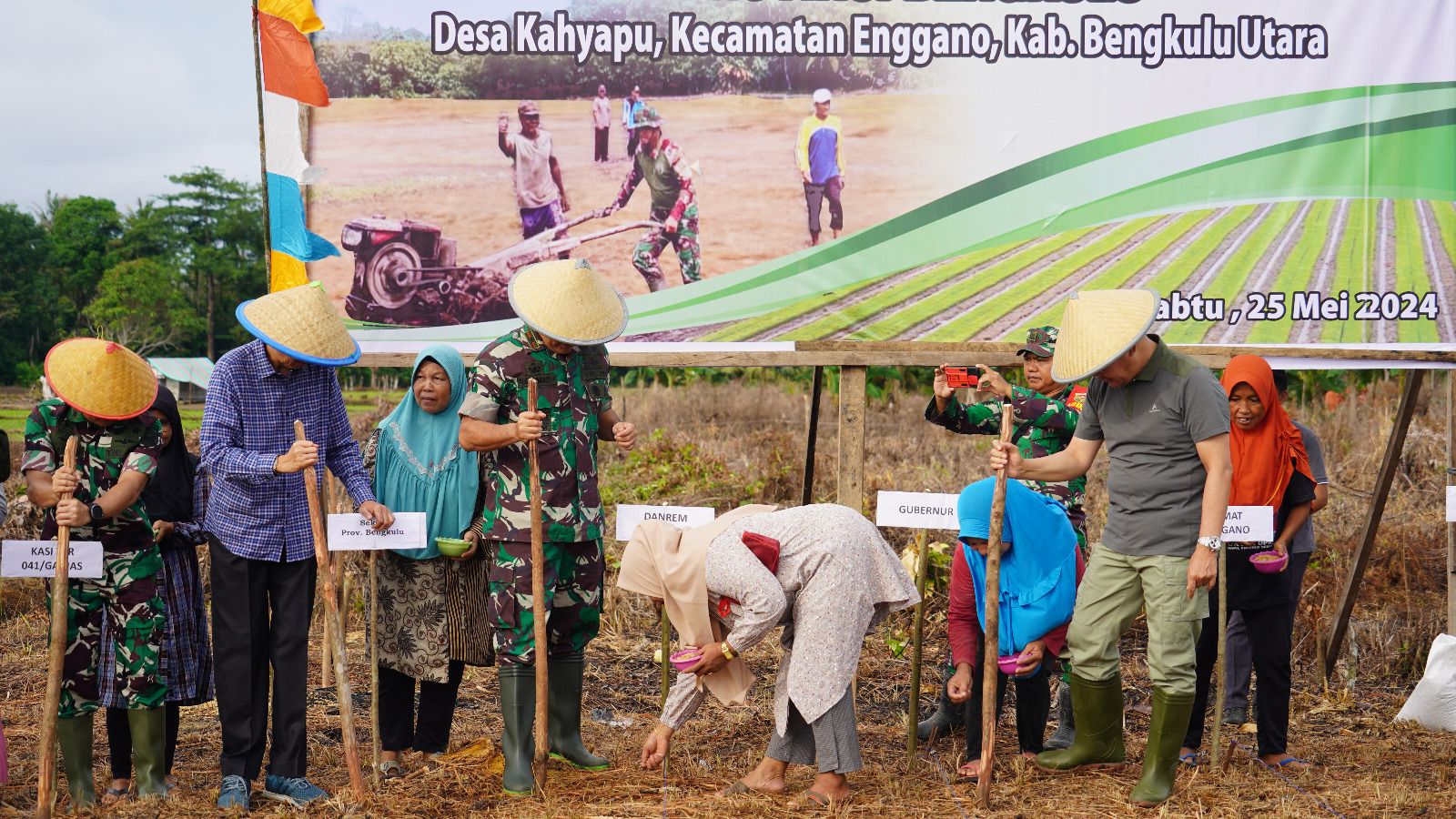 Selain melakukan peninjauan irigasi dan lahan sawah, Danrem 041/Gamas dan Gubernur beserta rombongan melakukan penanaman bibit padi gogo di desa Kahyapu, berharap ini menjadi motivasi masyarakat Pulau Enggano untuk kedepannya agar bisa lebih aktif memproduksi lahan kosong.
