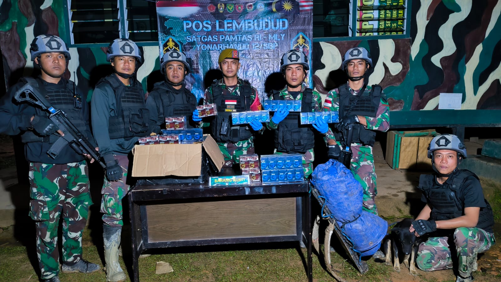 IBInews.co.id.Kaltara–Satgas Pamtas RI-Malaysia Sektor Barat Batalyon Arhanud 12/SBP berhasil menggagalkan/mengamankan 800 bungkus rokok jenis Grow yang diduga akan diselundupkan lewat perbatasan RI-Malaysia.
