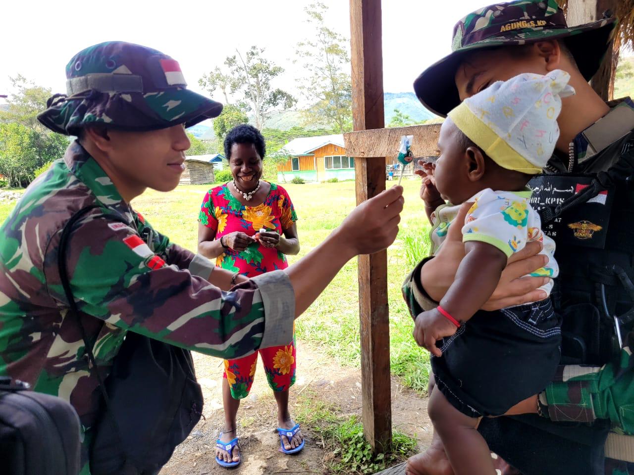 “Terima kasih Bapak TNI. Bapak TNI selalu membantu kami di sini. Bapak TNI juga selalu hadir di tengah kami. Semoga Bapak TNI semua dalam lindungan Tuhan,” ucapnya.