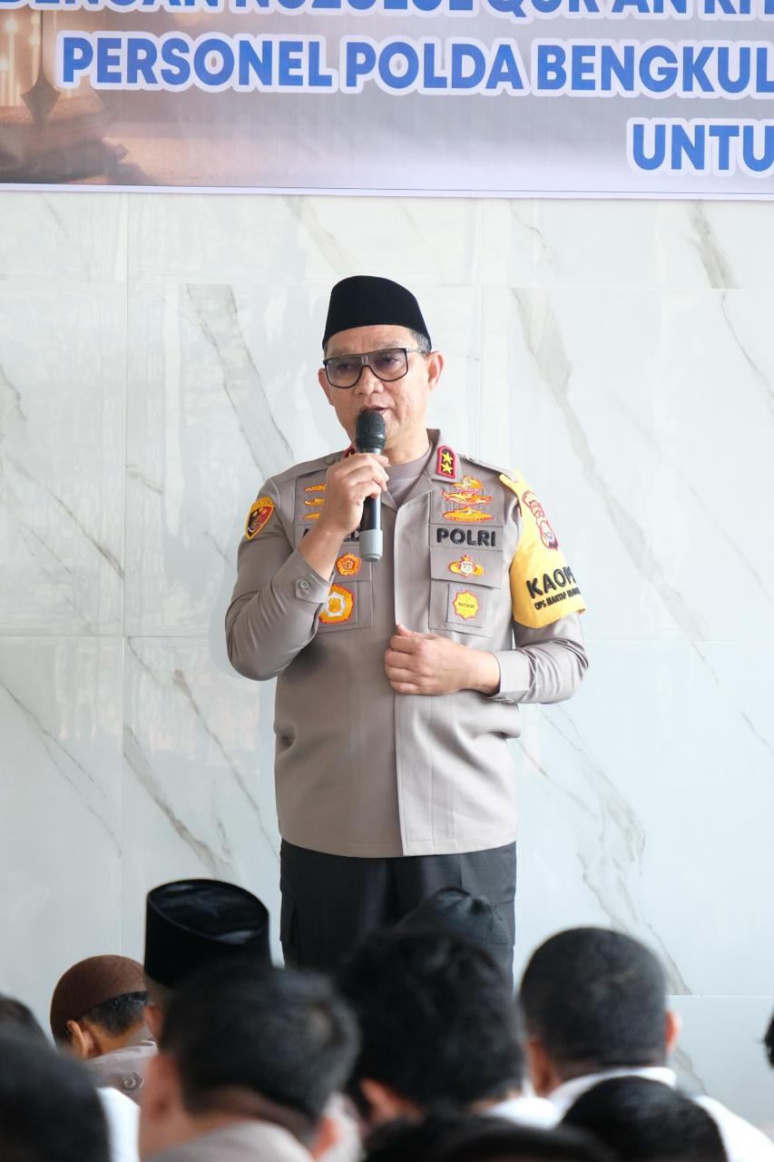 “Sebagai anggota polri, kita memiliki tanggung jawab besar untuk menjalankan tugas dengan penuh integritas dan keikhlasan. maka, peringatan nuzulul quran ini sebagai momentum untuk merenung, memperbaiki diri, dan memperkuat komitmen kita sebagai pelayan masyarakat,” kata Kapolda Bengkulu Irjen Pol Drs. H. Armed Wijaya, M.H.