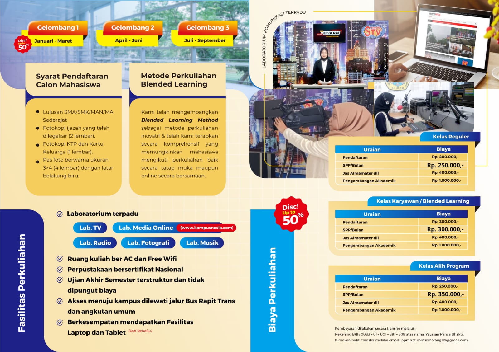 SEMARANG – Sekolah Tinggi Ilmu Komunikasi (STIKOM) Semarang membuka penerimaan mahasiswa baru bagi lulusan SMA/SMK/MA sederajat. Kampus ini menawarkan berbagai peminatan di bidang komunikasi, media, dan industri kreatif digital, lengkap dengan fasilitas perkuliahan dan program beasiswa.
